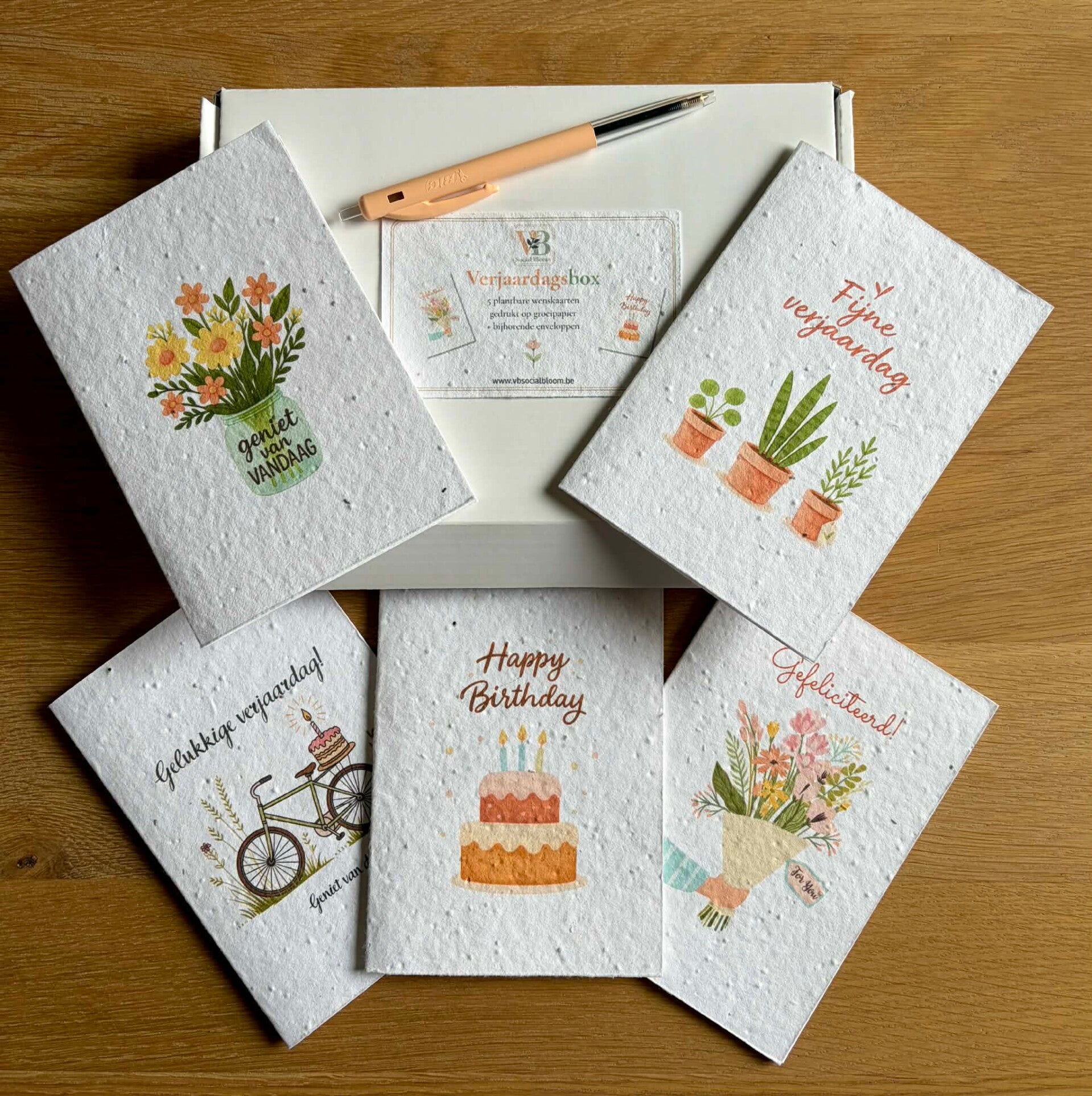 Verjaardagsbox – kaartbox met 5 verjaardagskaarten 🎉